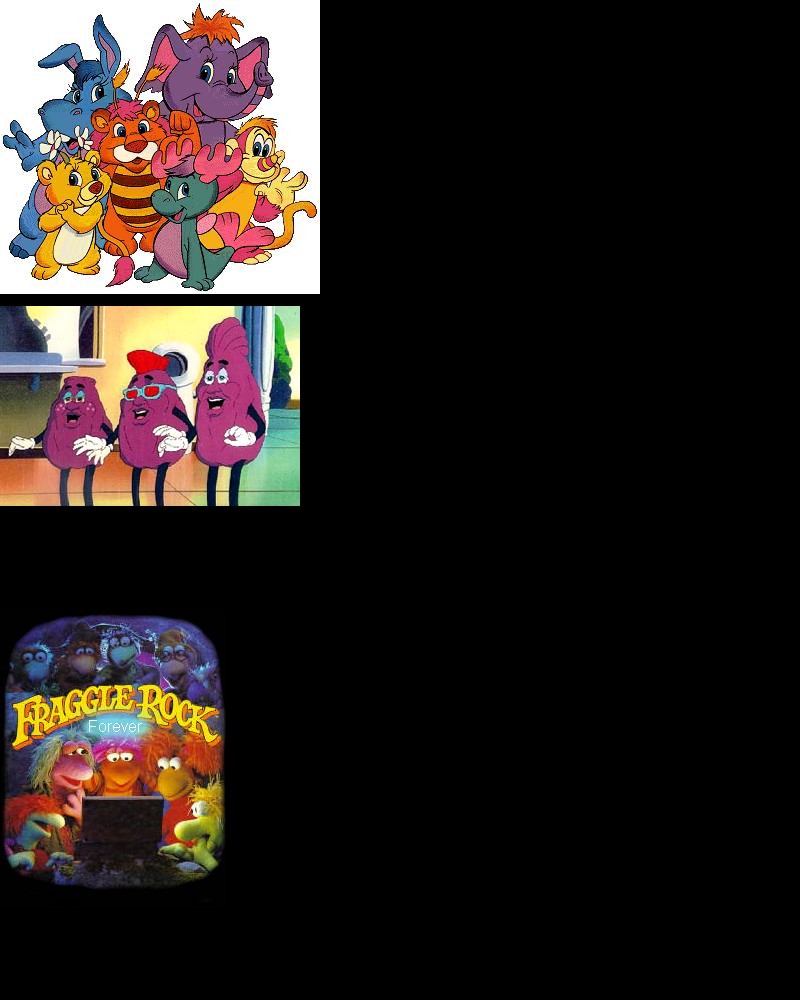 Alrighty...here we have Disney's Wuzzles, then in the middle we have The California Raisins, and at the bottom we have Fraggle Rock.
