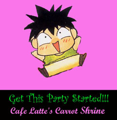 Oops!! I just had a Gateau Sydrom....Oh well, anyways these are the buttons to this shrine of *under breath* perverce, bondage, male male romance....Carrot-ness!! ^_^ Otay, there will be more buttons comin up...think....