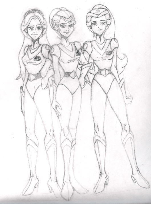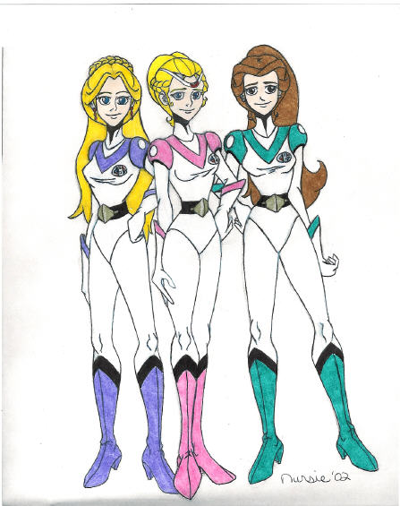 Princess Romelle of Pollux, Princess Allura of Arus, and Princess Mena of Vovin...(in their Voltron Force uniforms)