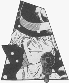 Kaitou Kid/Kaito Kuroba He's not really a villain and certainly not part of the Black Organization, but he IS on the wrong side of the law and is the one criminal Shinichi/Conan hasn't caught. A 17 year old master thief, he is a master of disguise and can change his voice, plus he has lots of nifty gadgets to aid him in his escapades. When he's going to steal something, Kid leaves the police puzzling riddles, usually only Conan can solve them. Interestingly, he can't ice-skate and he hates fish! Like Shinichi and Heiji, Kaito also has a female childhood friend, Aoko Nakamori (the daughter of the police detective determined to catch him), but she doesn't know about his secret identity. |