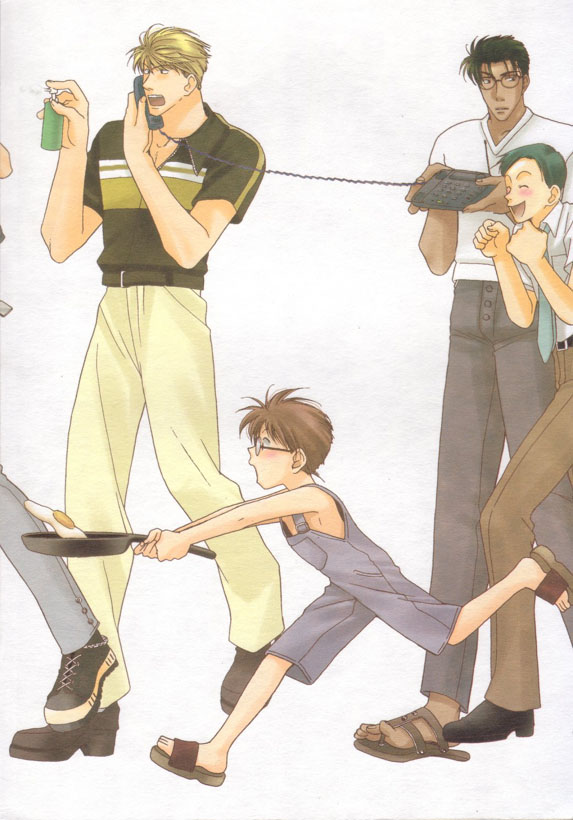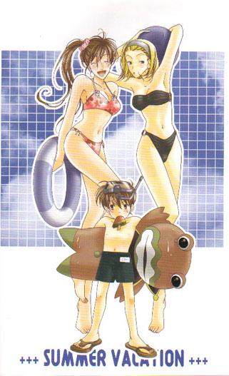 Nichiyousahanji Mainly focuses on the boys of Conan. They all gather at Kaito's for a chat and some strange competition ensures. Then Kid disguises himself as Ran and teases Shinichi - who is not too happy! Includes some great colour pictures at the end and the beginning -one of all the boys and one of Ran, Sonoko and Conan which you can see HERE! |