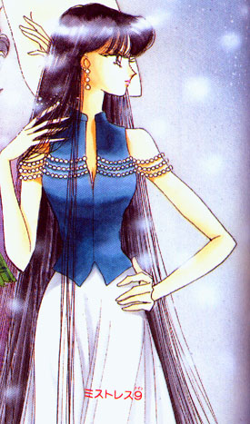 Mistress 9 is one of Hotaru's alteregos. This evil entity awakened after Hotaru's father made a deal with Pharoah 90 to house Mistress 9's spirit in exchange for keeping Hotaru alive. Mistress 9 might have succeeded in resurrecting Pharoah 90, were it not for the awakening of Sailor Saturn.