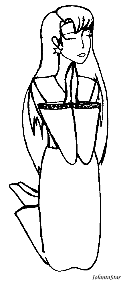 Here are some pictures I drew and then scanned for the purpose of coloring. If you like them, you are certainly welcome to take and color them and then to use for whatever pupose you wish, as long as it's not commercial. Just right-click on the picture you like and choose Save As. Double click to see the picture full-size first. There are just two rules for using my creations: 1) If you post one of these pics for someone else to see, make sure to mention my name and E-mail address (IolantaStar@hotmail.com) so that the viewer(s) could contact me if need be; and 2) Do not erase my name from the lower right corner of any of these pictures. I've worked very hard to make these, so please don't just steal them by posting them without giving me proper credit. Underneath each picture there is a link to my version of how to color it. This is just an example (and generally not a very good one at that). |