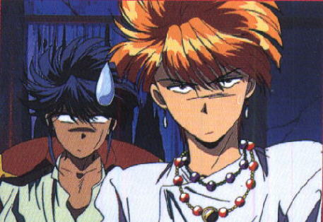 The story revolves around a 15 year old girl named Miaka Yuuki. She is getting ready for her high school exams. She and her friend, Yui Hongo, go to a library. Miaka, who seems to be a very curious girl, goes into a room with a sign saying something like, "Employees only." Yui finds her in the room and they find an old Chinese book called The Universe of the Four Gods. As they turn the page, they are pulled into the story of the book. A man with a character of an ogre(oni) on his forehead saves them from some slavers. Yui suddenly vanishes in red light and is brought back to the library room. Miaka is frightened, because she has no idea where Yui disappeared off to. Now she must try to figure out how to get back to her world. She journeys with others, becoming Suzaku no Miko (Priestess of Suzaku), and acquiring new powers.