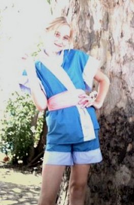 For the top we used a kimono pattern, which we shortened. The shorts were super easy, as was the sash. It was a very simple costume.