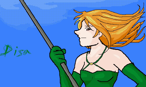 I was late(again!) I'm really sorry about that. To make up for it, I did an oekaki(which is incredible difficult because it was all drawn with a mouse) and it turned out really well(in my opinion) I really liked Disa, I thought she was neat. once I get some free time I'll scan in the sketches I did of her while I was in class.