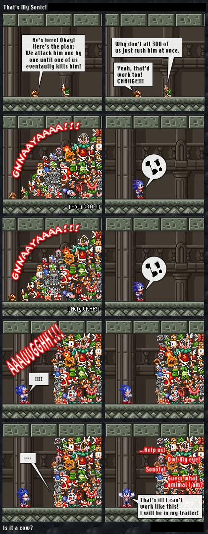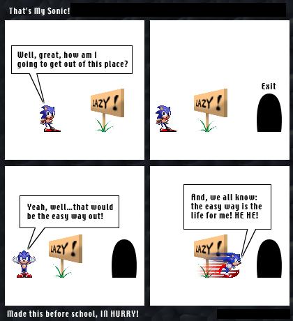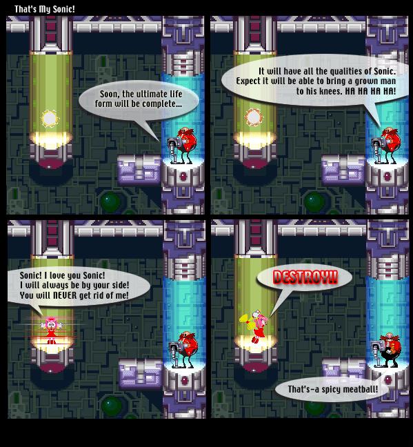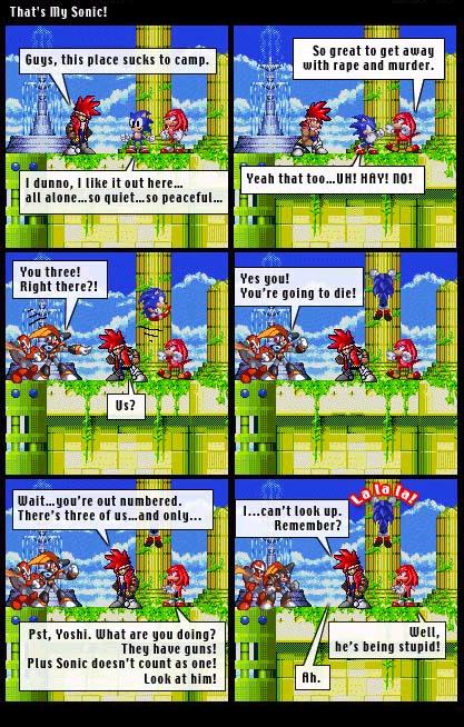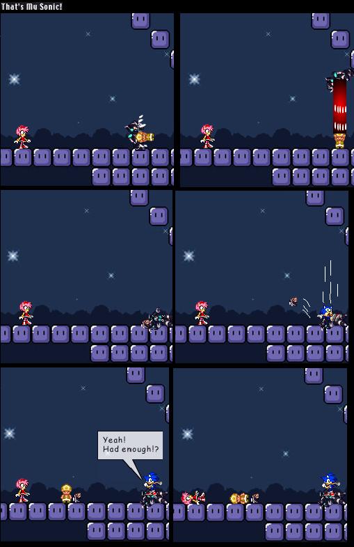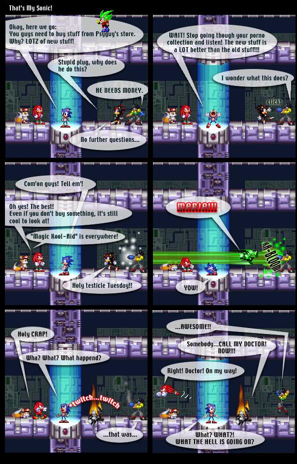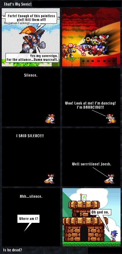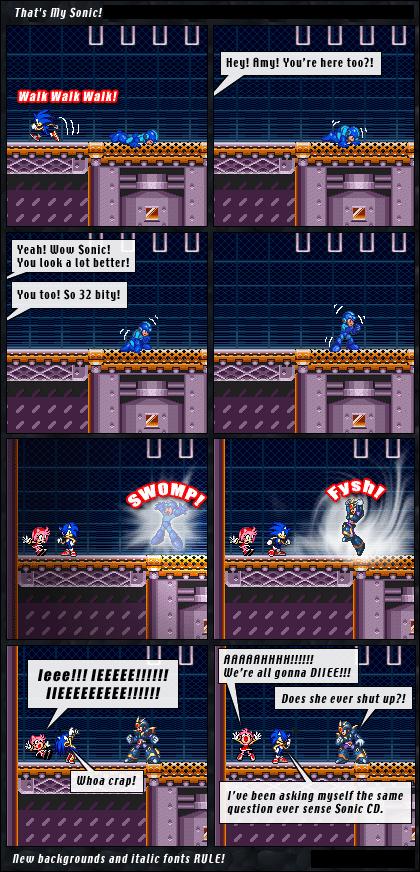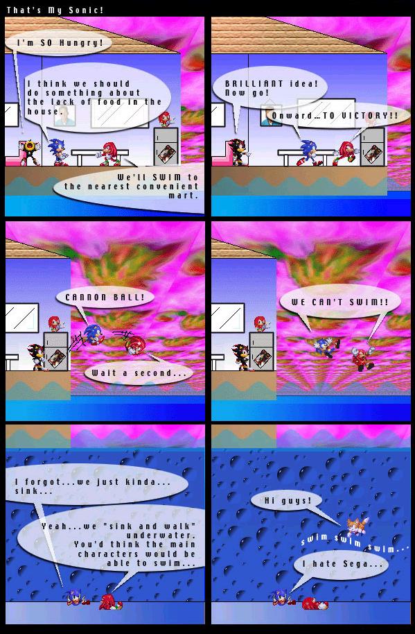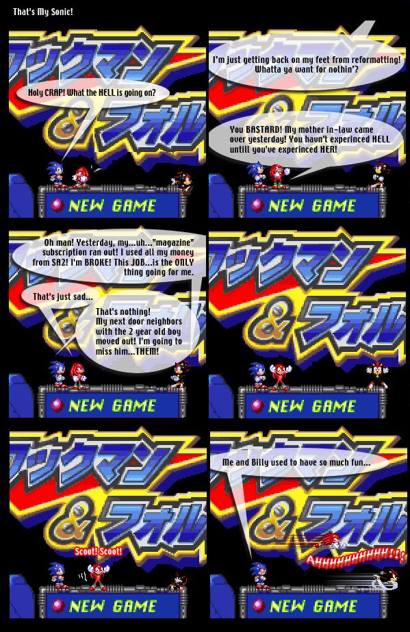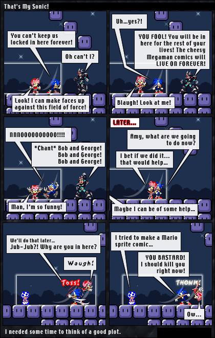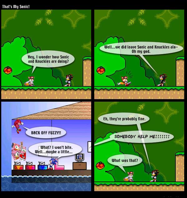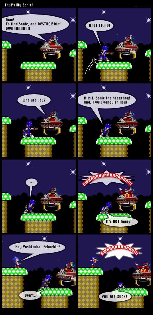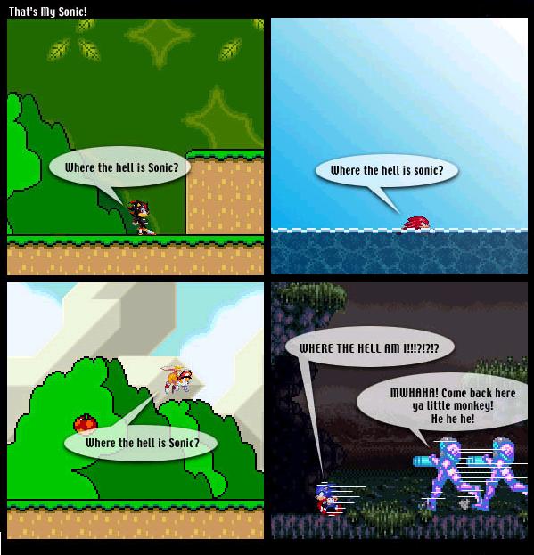 That's My Sonic! My very own sprite comic about Sonic the Hedgehog and the others. Even features some other characters from some other stories. There's quite a lot of pages, So get reading!