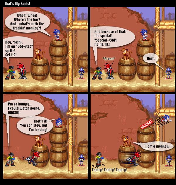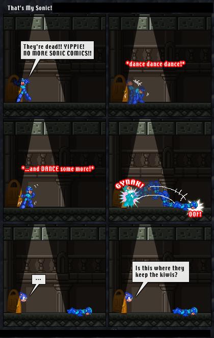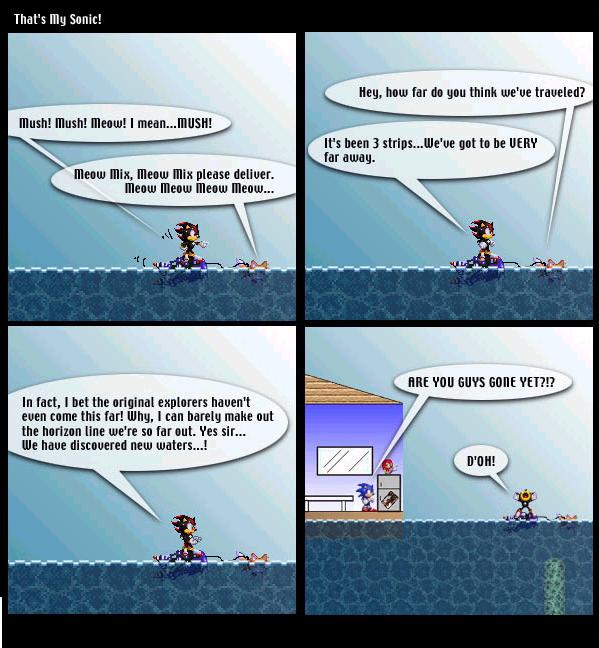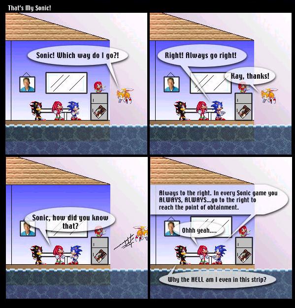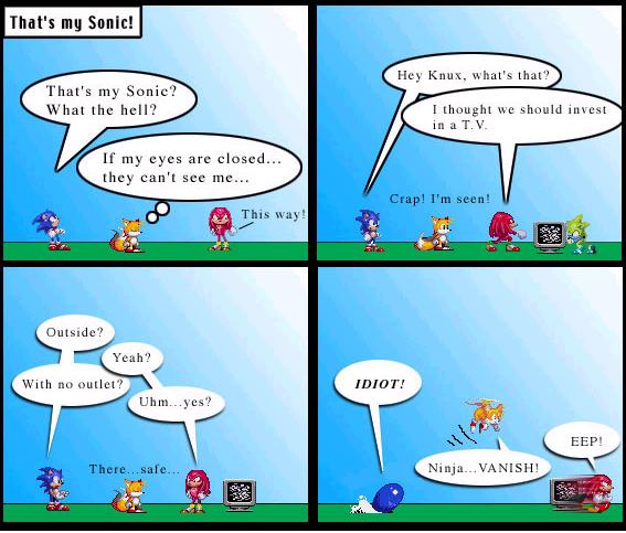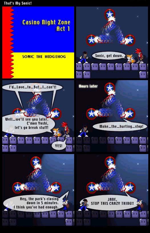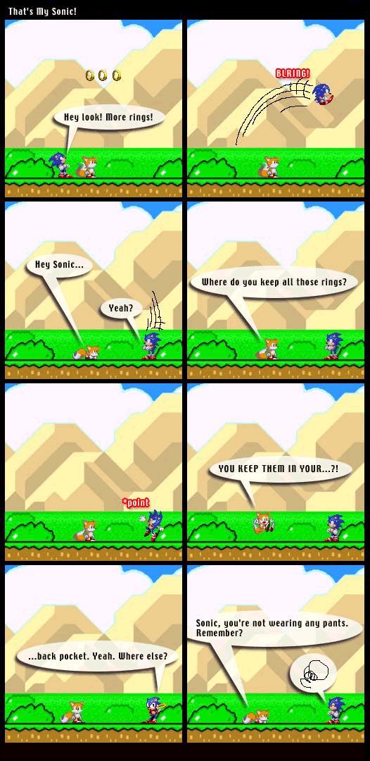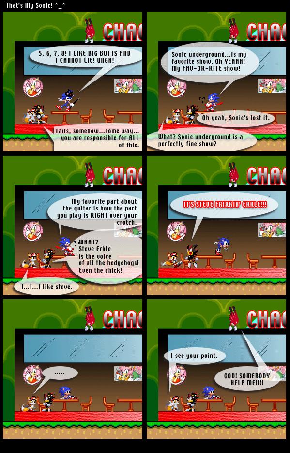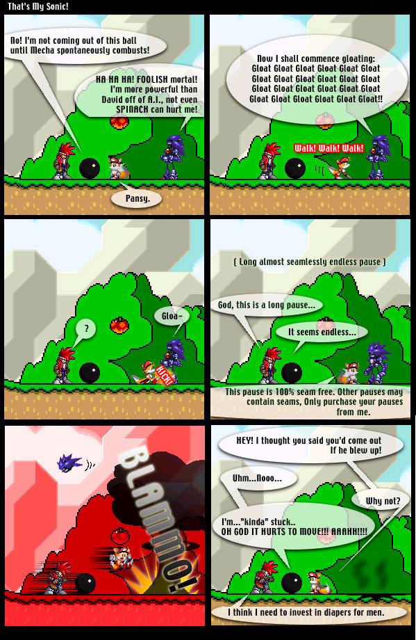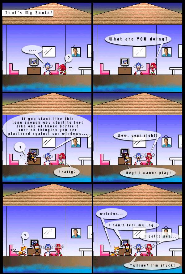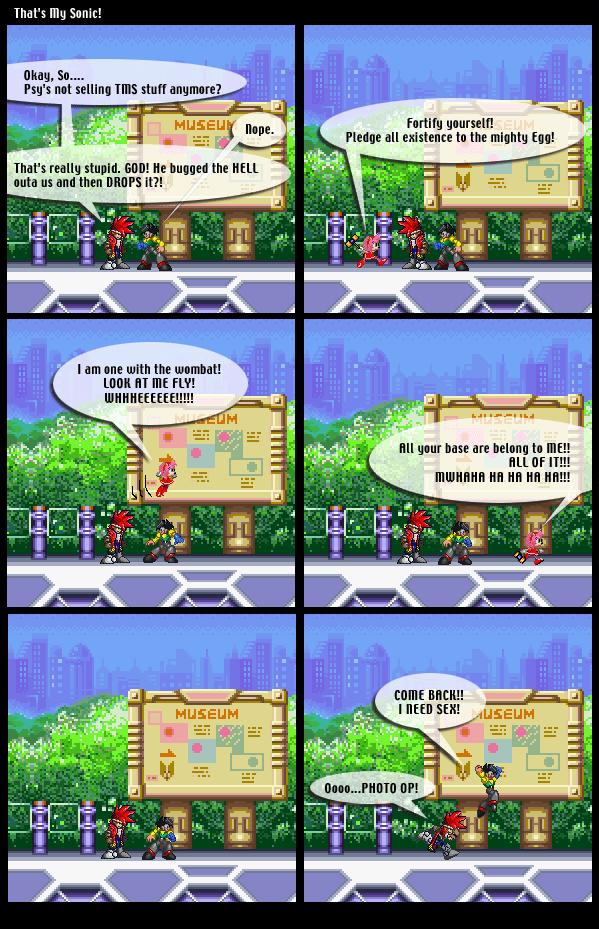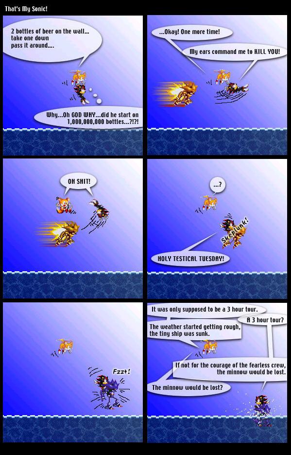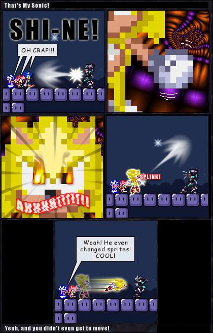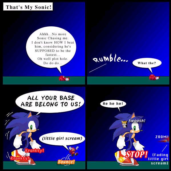 That's My Sonic! My very own sprite comic about Sonic the Hedgehog and the others. Even features some other characters from some other stories. There's quite a lot of pages, So get reading!