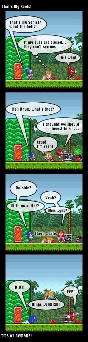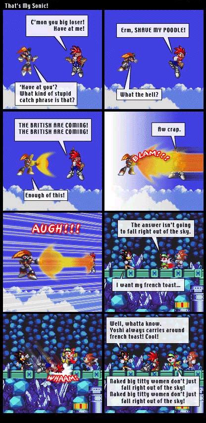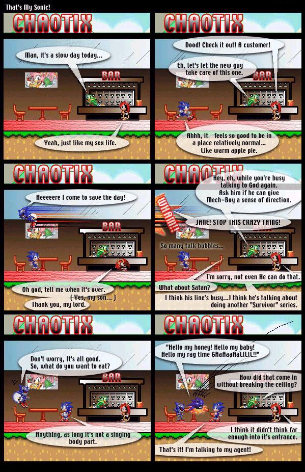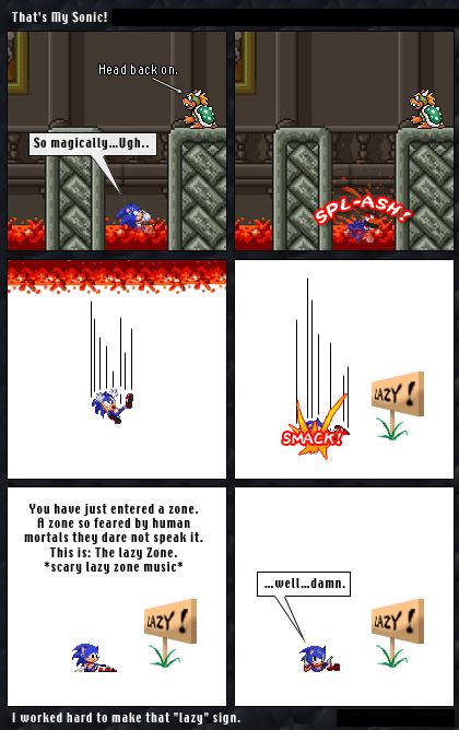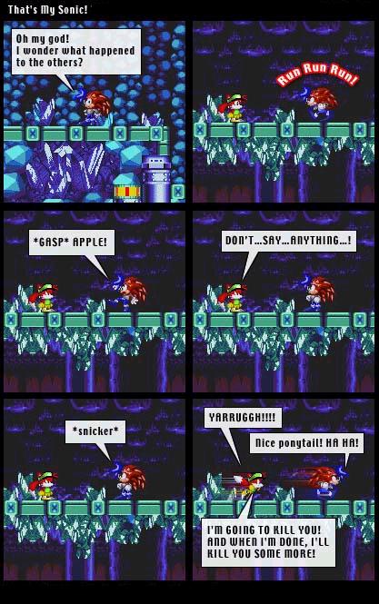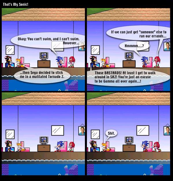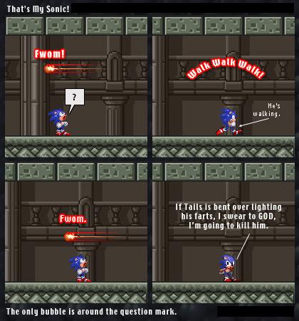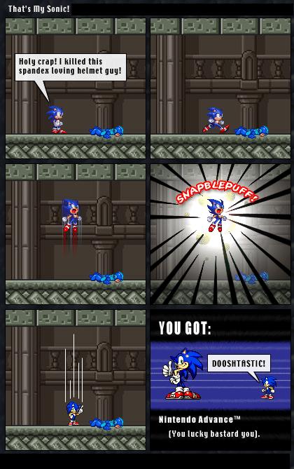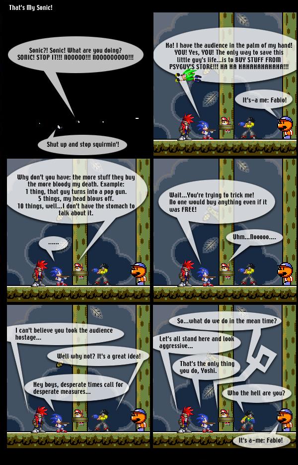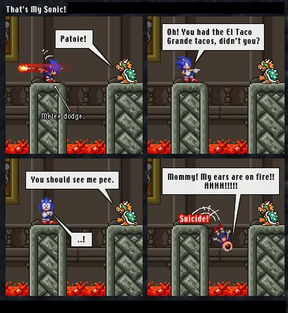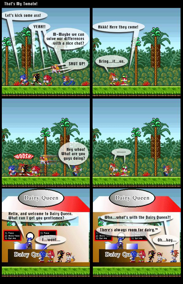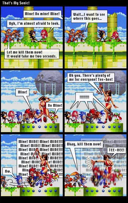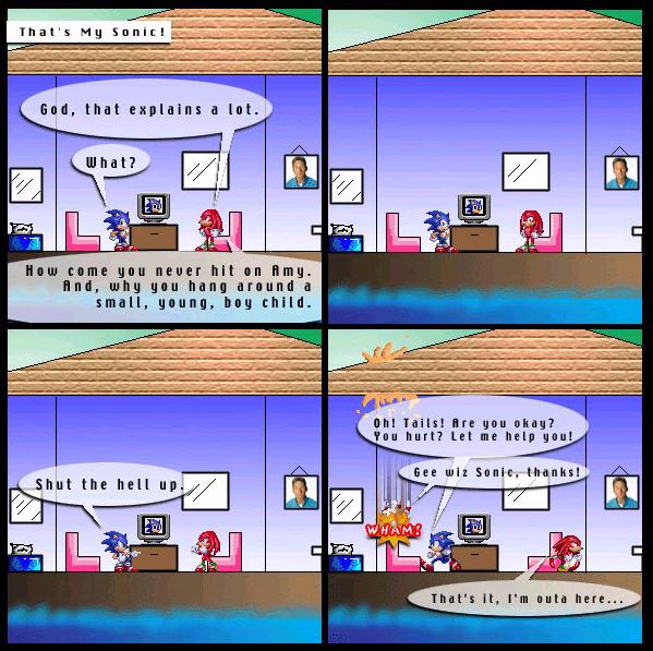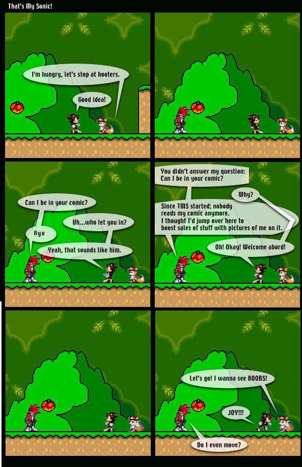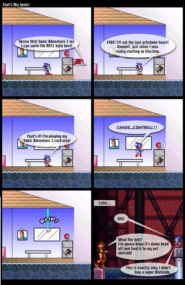 That's My Sonic! My very own sprite comic about Sonic the Hedgehog and the others. Even features some other characters from some other stories. There's quite a lot of pages, So get reading!