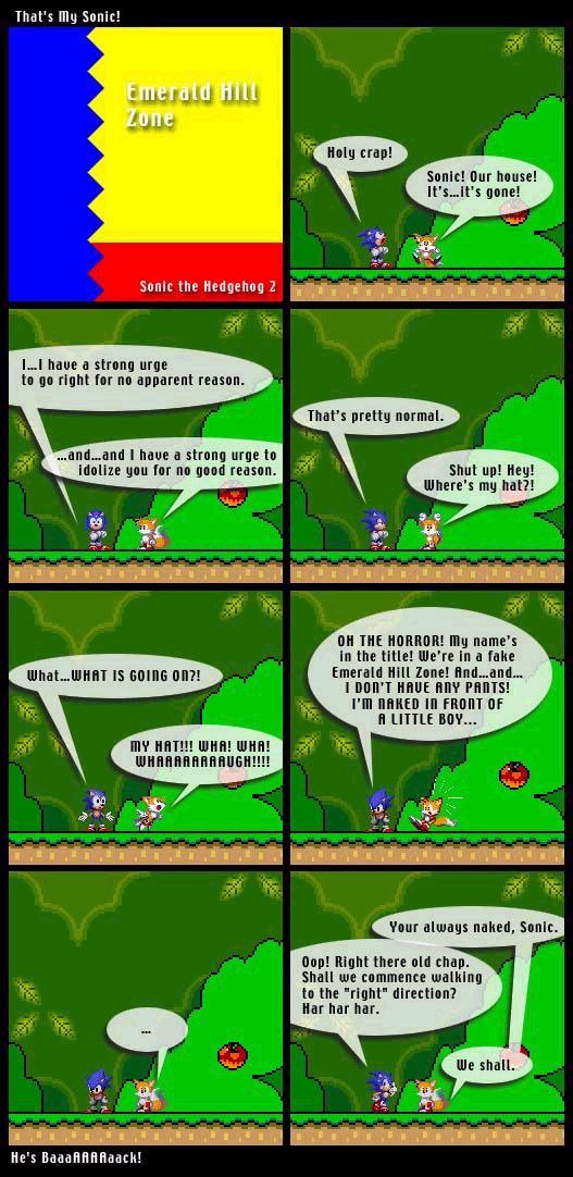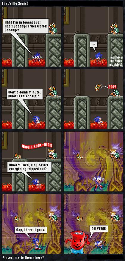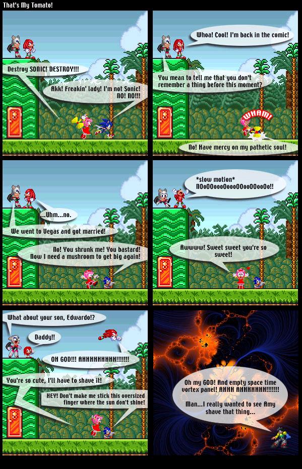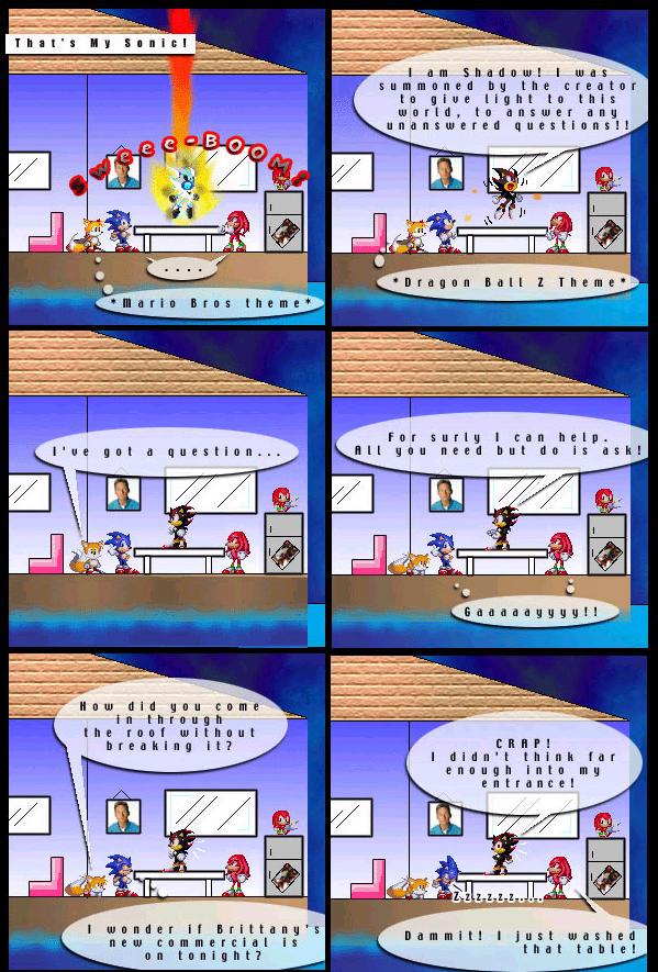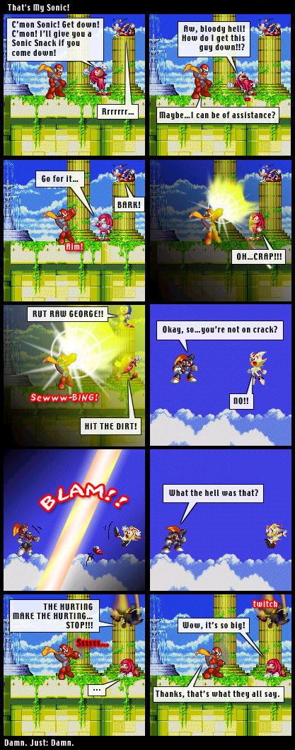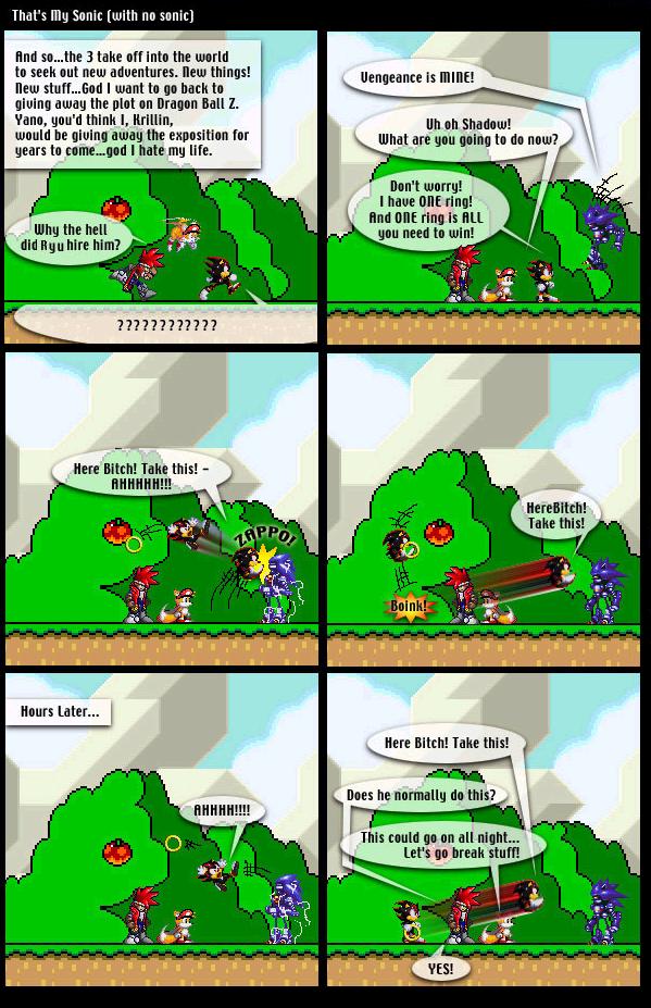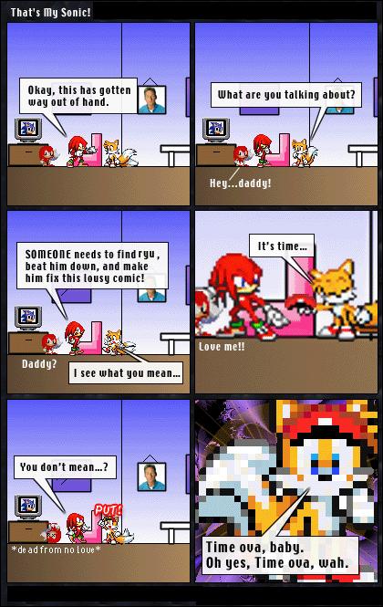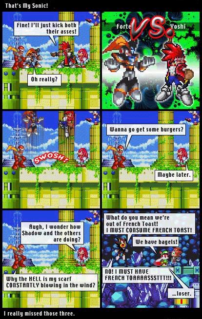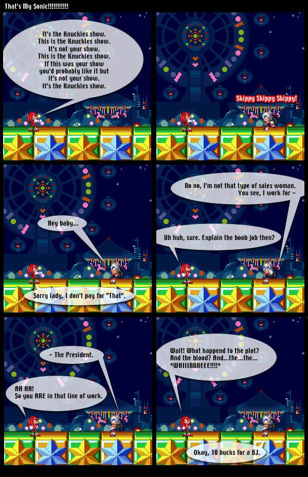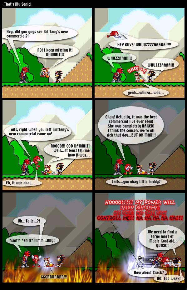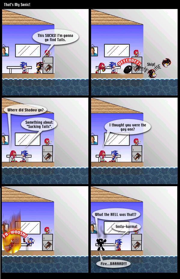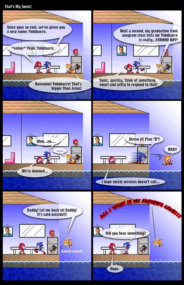 That's My Sonic! My very own sprite comic about Sonic the Hedgehog and the others. Even features some other characters from some other stories. There's quite a lot of pages, So get reading!