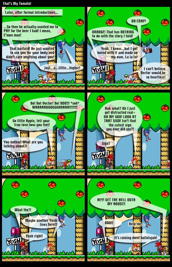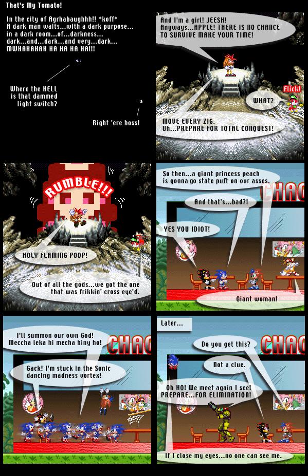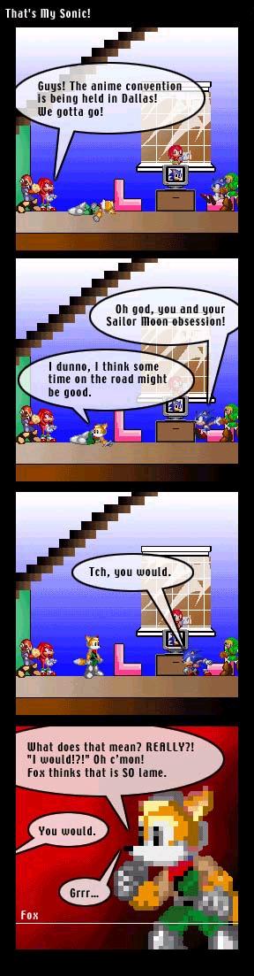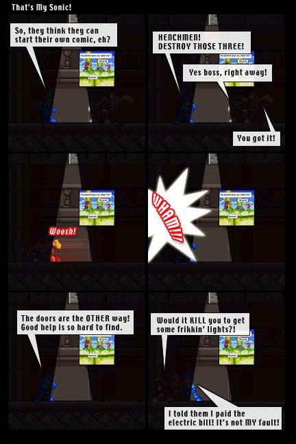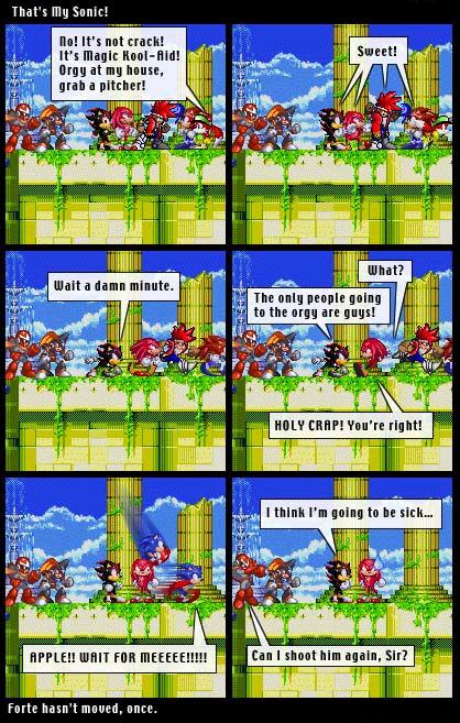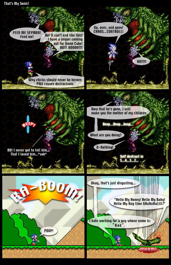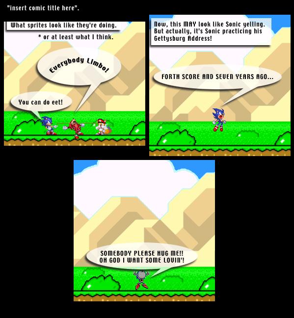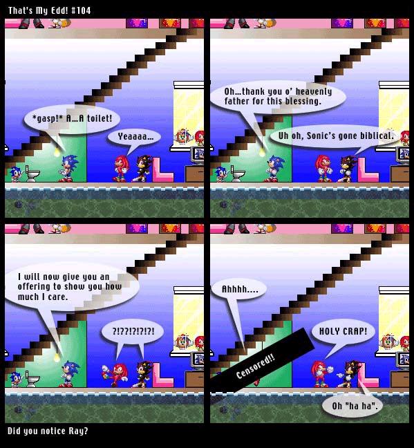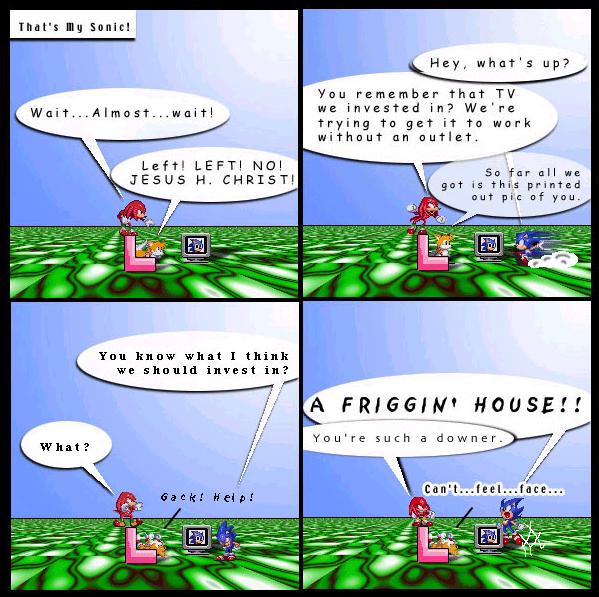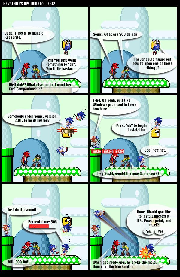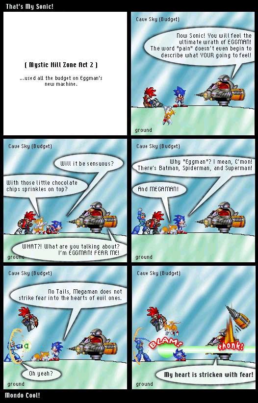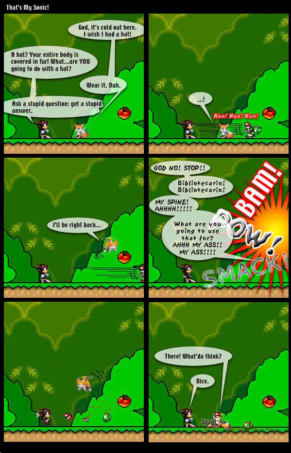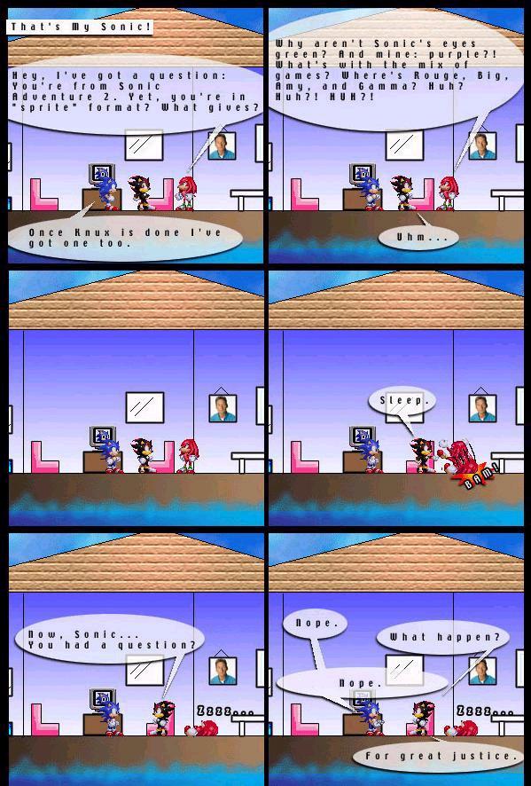 That's My Sonic! My very own sprite comic about Sonic the Hedgehog and the others. Even features some other characters from some other stories. There's quite a lot of pages, So get reading!