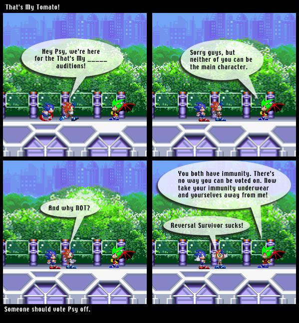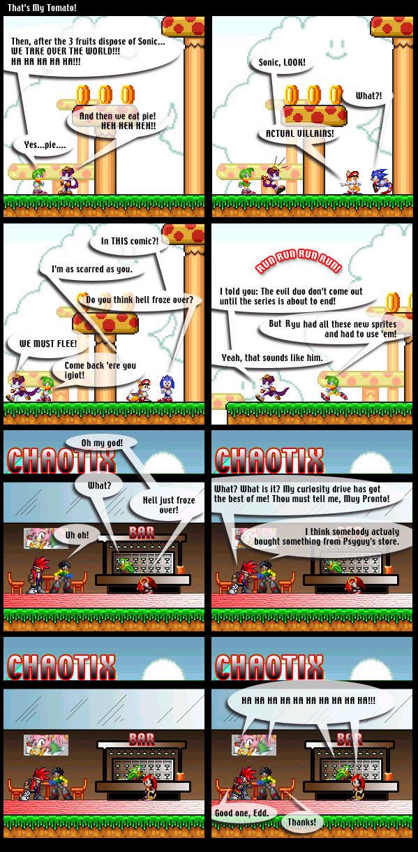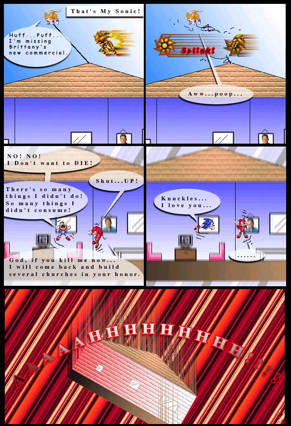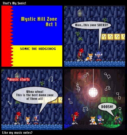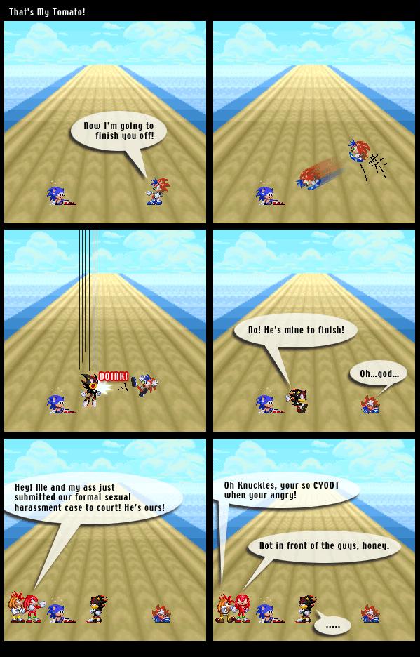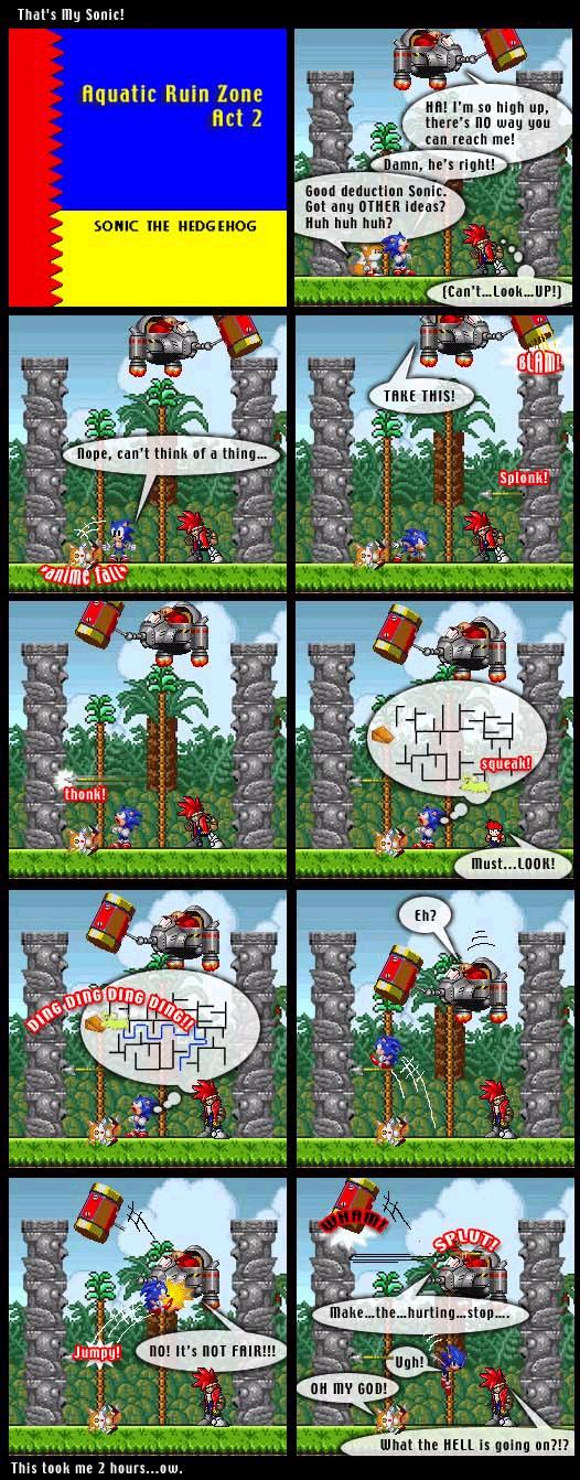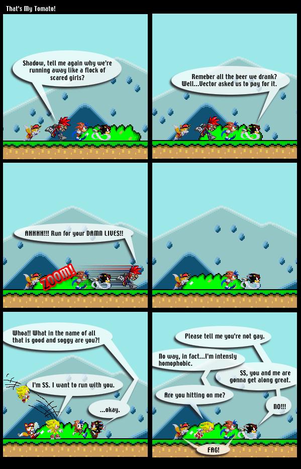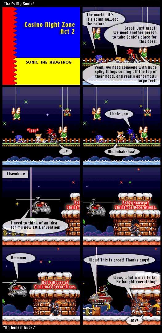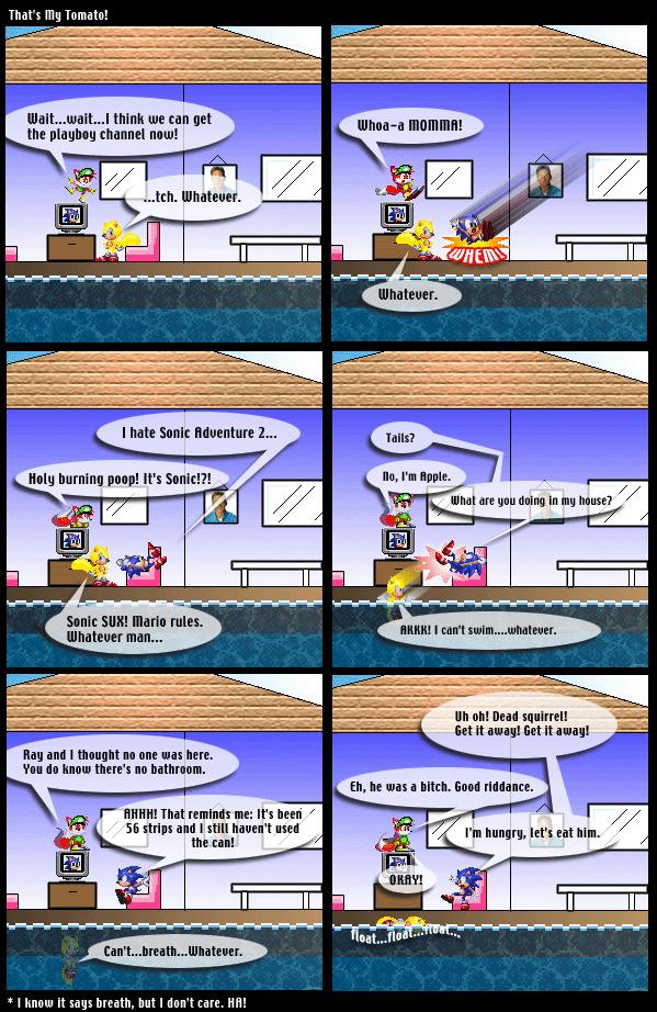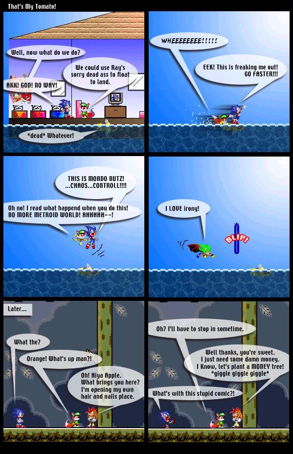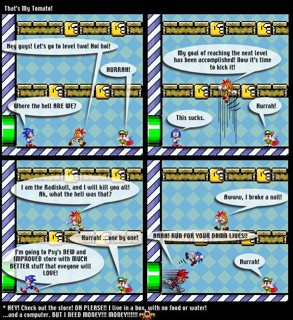 That's My Sonic! My very own sprite comic about Sonic the Hedgehog and the others. Even features some other characters from some other stories. There's quite a lot of pages, So get reading!