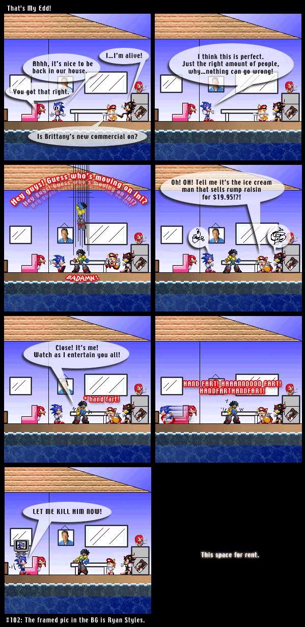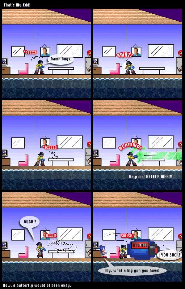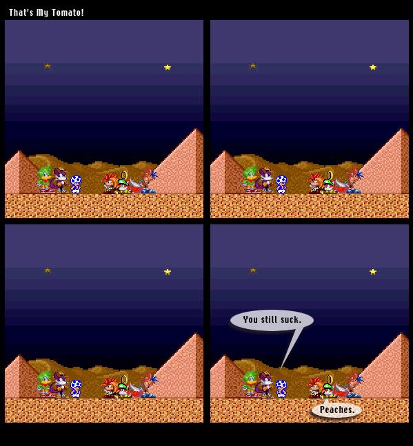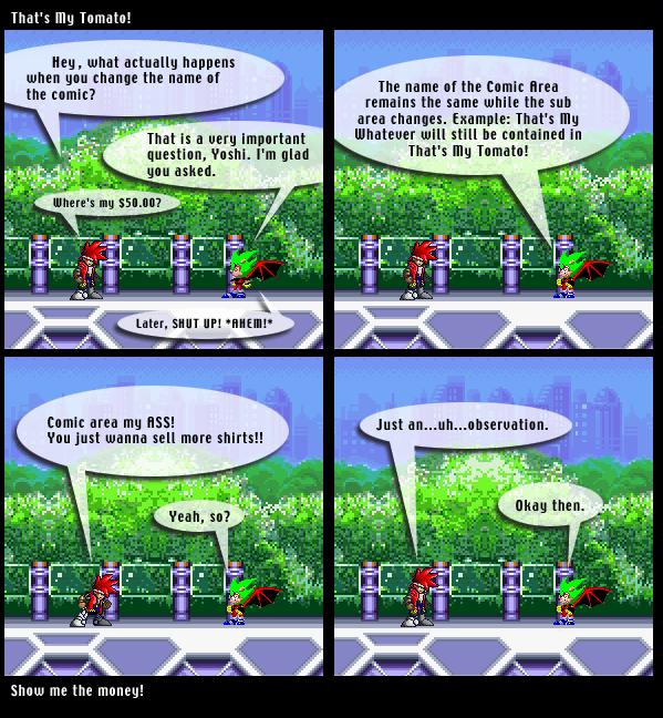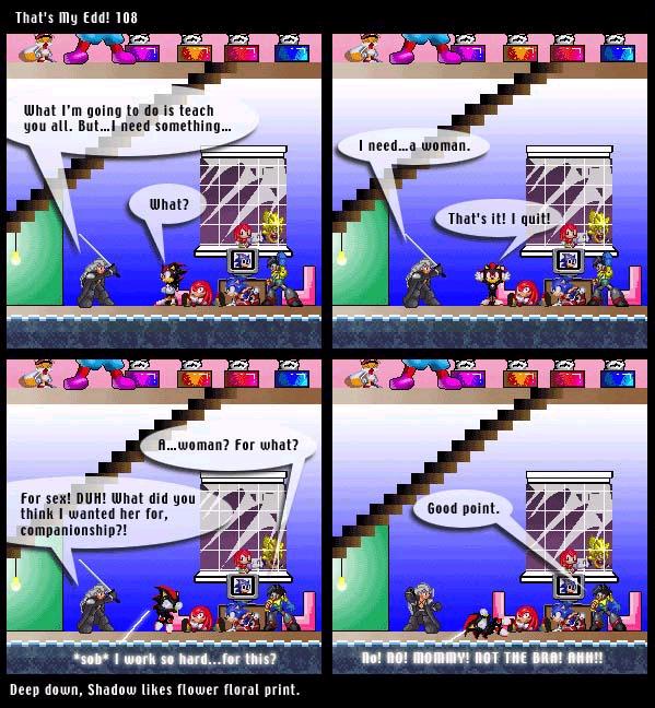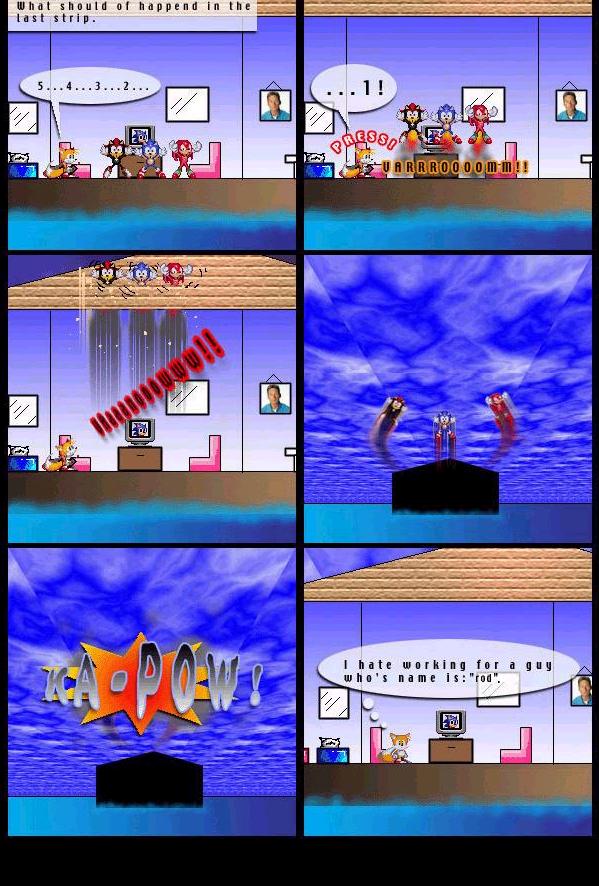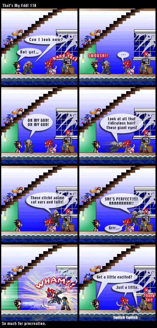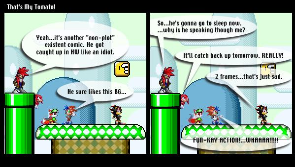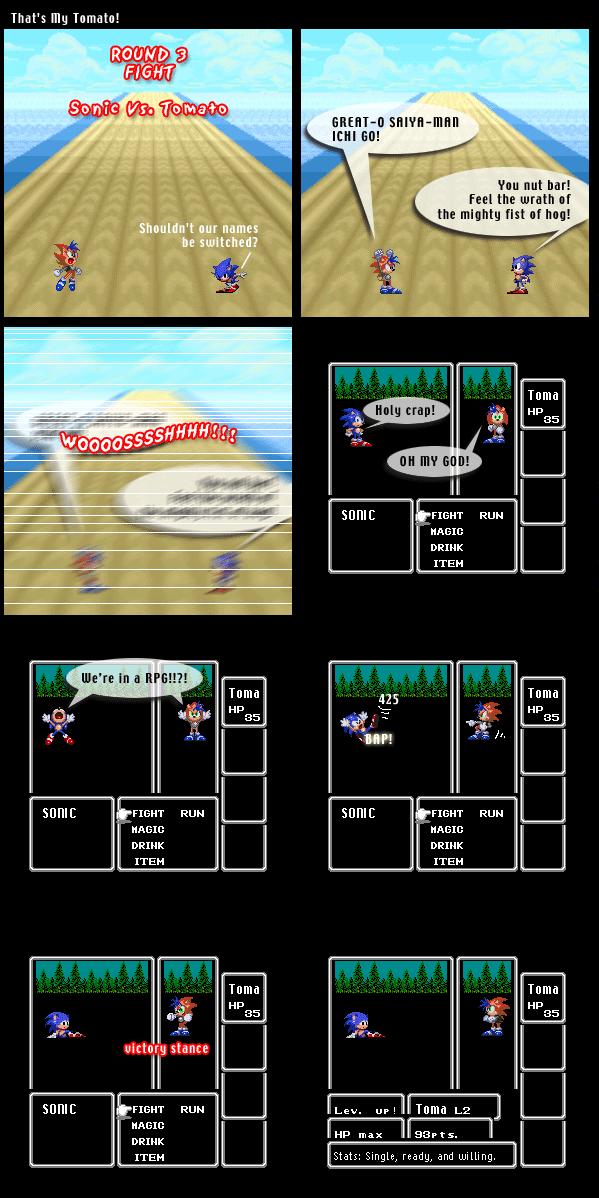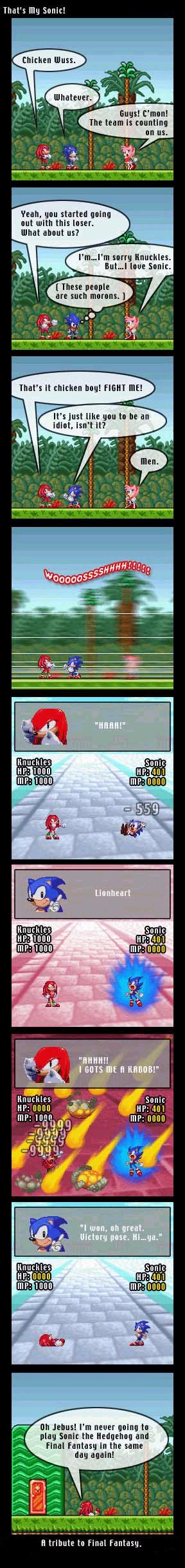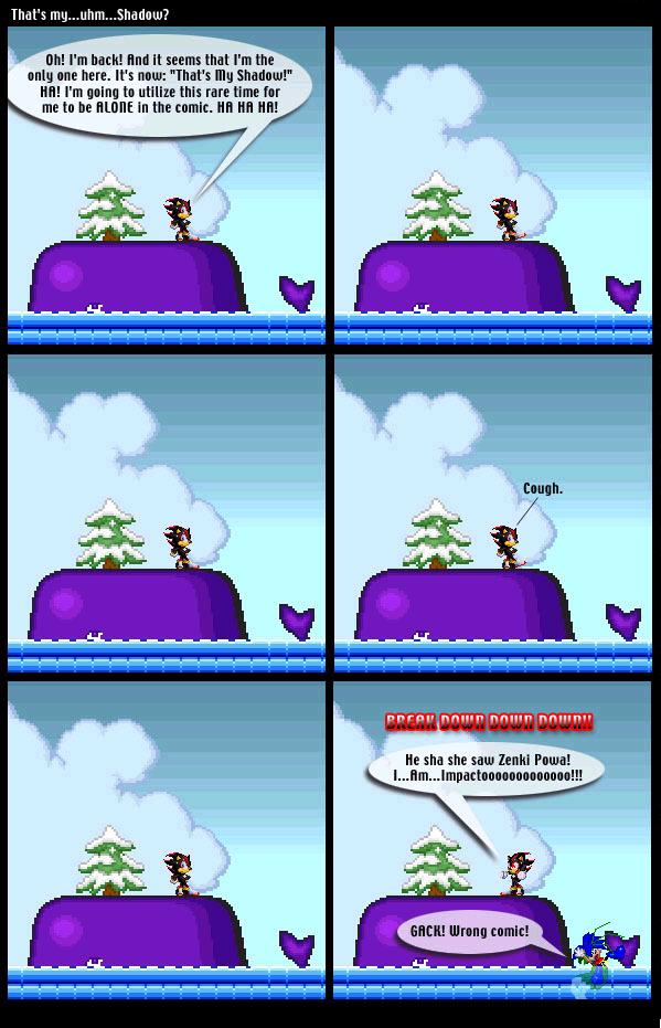 That's My Sonic! My very own sprite comic about Sonic the Hedgehog and the others. Even features some other characters from some other stories. There's quite a lot of pages, So get reading!