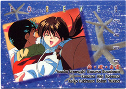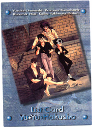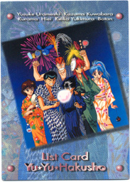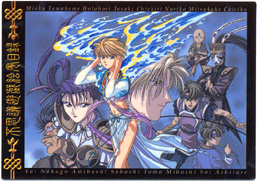 Hi! I'm a fairly new collector of anime trading cards. This site is devoted to the sale or trade of cards. I have currently acquired 3 new sets: Cowboy Bebop, Final Fantasy X-2 Art collection, and Suikoden 3 bonus collection. I am now living in Japan which means my access to the FY, Ayashi and YYH cards is limited (they are in America) but if you're patient we can work something out. All other sets are with me in Japan.
