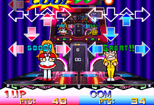 It's a small-time Beatmania style game...press the arrows in time to the music! You get a nice little 'Move your body' song playing in the background. There's also a guitar game which is impossible - I don't understand why, but I'm literally hard pushed to score more than 10, while the computer will routinely get over a hundred. I must be playing the thing wrong.