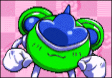 This guy actually appears in loads of Twinbee games - whether it's always him, or whether there are several is not entirely clear. Comes in black & purple models. Either way, he's a jerk and quite indiscriminate about who he sides with - he's worked for Iva, Warumon & Mardock in his time. You can't tell from the picture, but he's much bigger than Twinbee.
