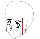 3. I've penciled in the geometric shape of the jaw line. (Keep it light!) The red line I use to mark the edge of his face. ;) | ![]() |