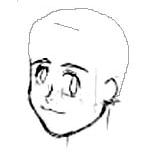 5. This is the final step in this tutorial. The hair. I place a horizontal line above the eyebrows to place the bangs. They all sprout out from that line. The tips of his spikes should just go past his eyeline. After the bangs are in, I start at the leftmost spike/bang, and follow the circle with large "bumps". I didn't draw all the braid, but I made sure I put it in. ;D And voila! | |