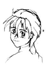 Mouth....Duo has a big one. ;) But it is still only a continuous line. Simple right? Duo's mouth is placed close to his nose...not his chin! Keeping the features close together gives Duo his youthful look. (If you want to make a mature Duo, place the features farther apart). |
