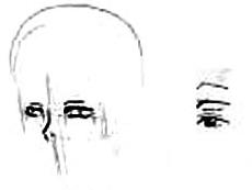 3. I've sketched in the geometric shape of the jawline. I've also added eyebrows. Just a thickened line. |