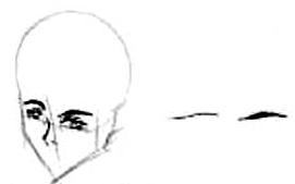 Eyebrows: The eyebrows, like Trowa's, are at an angle, pointing towards the nose. As you can see, they're thick in near the nose and thin out as they move away from the face. |