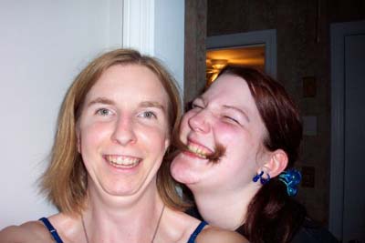 (That's Laura on the left having her hair attacked by Kristin. Heh.)