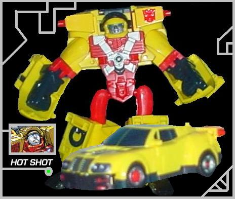 Hot Shot is an Autobot prince. He is often very impulsive which gets him into alot of trouble. He was one of Optimus's origional three team members before backup was needed on earth. He is a team player but he often slacks off. He is still young and he hasn't been able to handle his true power yet. He can turn into a yellow sports car.