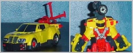 In Hot Shot's car form Jolt can combine with him to increase his speed. In his robot mode Jolt goes to Hot Shot's back and unlocks a secret mounted gun!