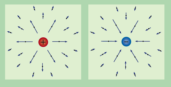 Electric fields. (Left) Field of a positive electric