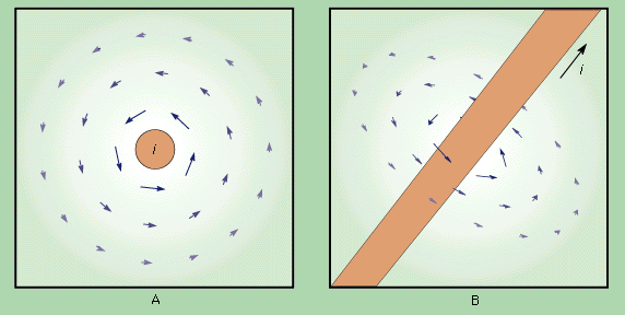 generates a magnetic field. For a long straight wire, the magnetic field has