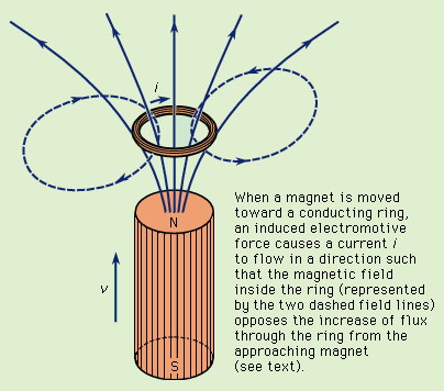 Demonstration of Faraday's and Lenz's laws.shows a magnet brought