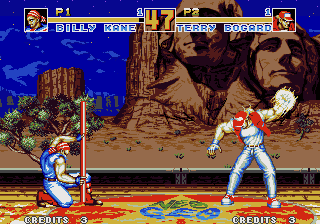 Game shot, left (Billy Kane) right (Terry Bogard).