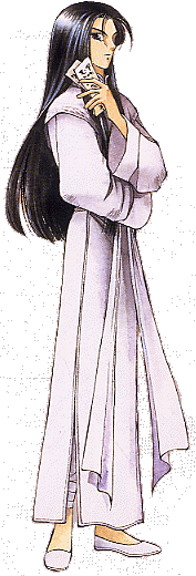 Marron wears all white (a cheongsam) and it sure does cover a lot of skin. It makes one wonder what Baby-Glace might be wearing underneath it... ::lapses into giggling fits between incomprehensible mutterings about bondage:: Oh, and he grows his hair out for two reasons: One, because his mum died when he was little and he wants to keep her memory alive by looking like her ::koffmama'sboykoffkoff::, and two, because of the beneficial storage space. You wouldn't believe the capacity of this lovely raven-tressed lad's ample mane. People have been known to get lost in Marron's hair (he has gone through at least seven salons trying to find a nice lady who can do his hair before falling into it and dissappearing forever).