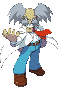 A mercenary hired by Sigma to bring down the Eurasia Colony, Dynamo is rarely serious in what he does. He attacks using a dual-bladed lightsaber weapon. The eccentric Dynamo constantly believes he poses a threat to X and Zero, and frequently taunts them.
