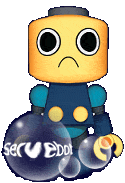 Eddie is a friendly helper robot for Megaman, built by Dr. Light. During battles, when he is called, Eddie will teleport in briefly and his top will flip open, giving Megaman a powerup or health of some kind, and he will then teleport back out again to go restock.