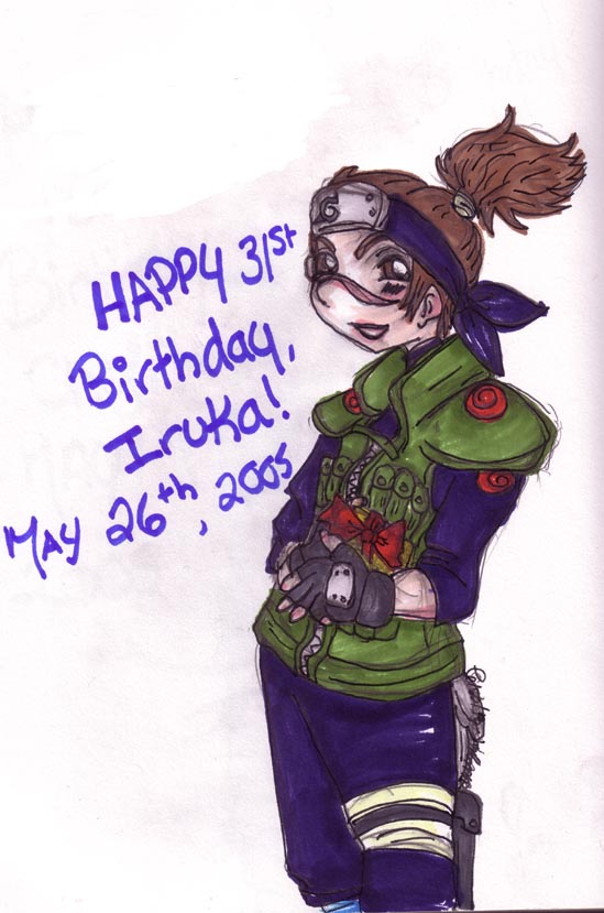 Happy birthday to Iruka. I think for some reason I got the date wrong. I'm always confused by Iruka's birthday and how old he is. Anyway, pencil and marker on 8 1/2 by 11".