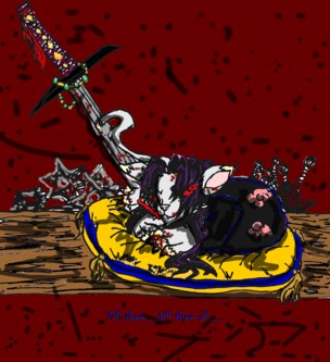Drawn for a friend. Itachi as a very evil kitten. Drawn and inked by hand, scanned in and coloured in Photostudio.