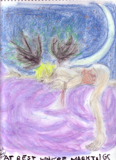 Something I doodled just for the hell of it. "At rest where markings have no meaning". Oil pastel. Probably done in half-an-hour.