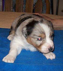 ![]() Red Merle Girl - Lily. Photo at 3 Weeks old. |