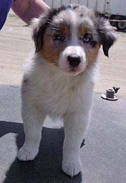 ![]() Red Merle Girl - Lily. Photo at 6-7 Weeks old. |