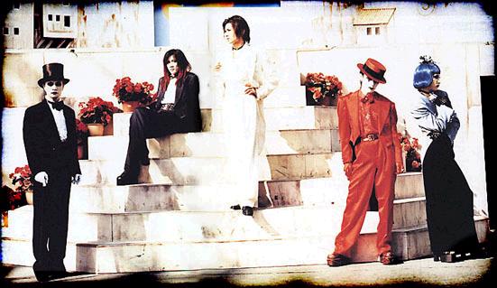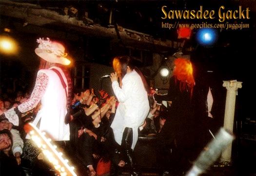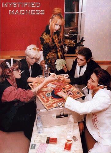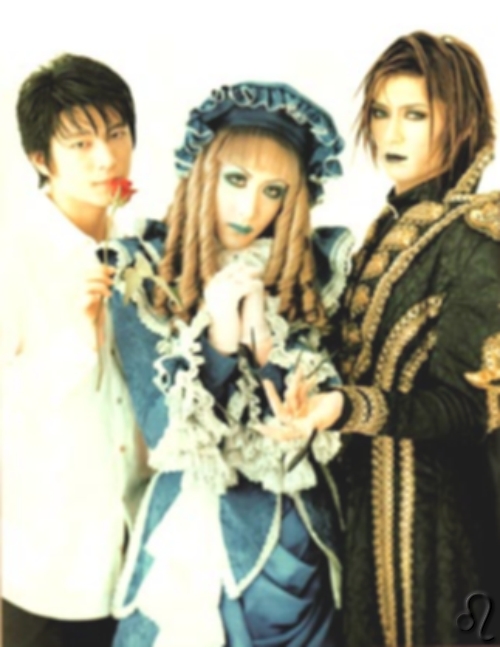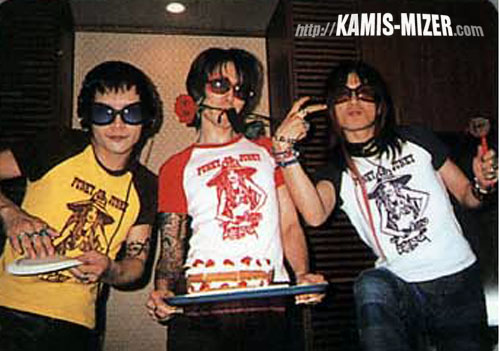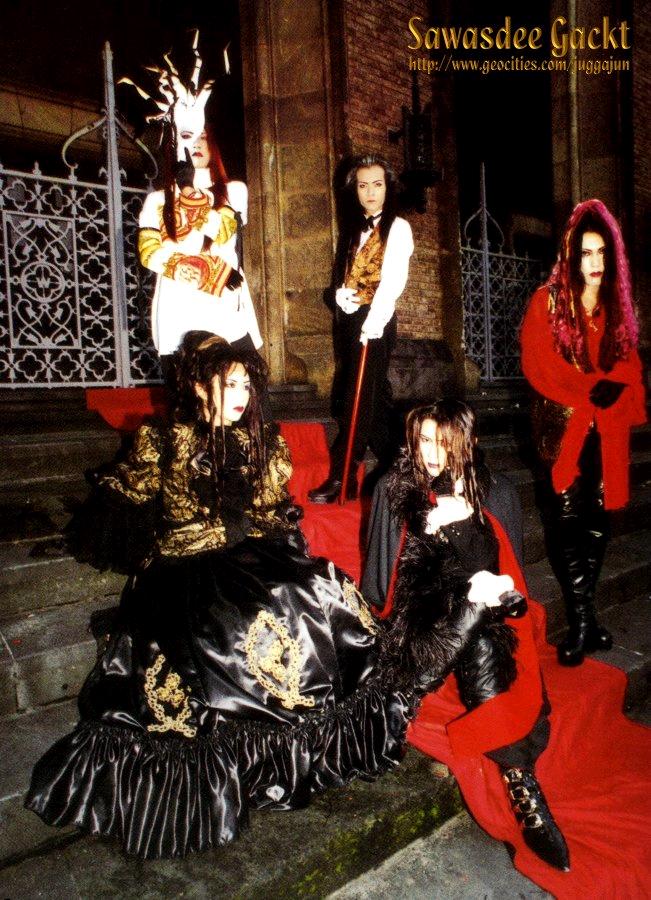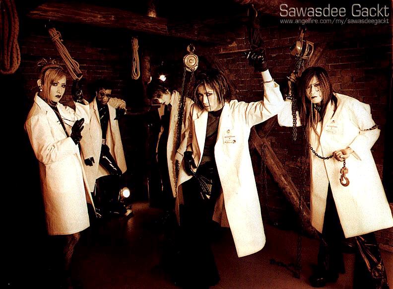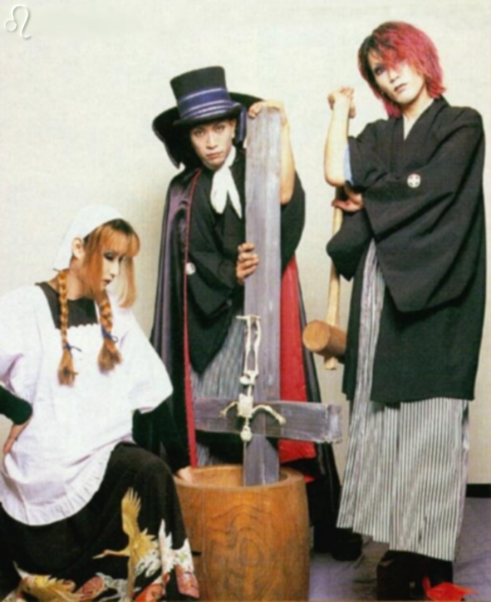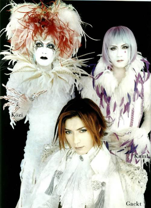 Kami, Gackt, and Yu~ki in a Japanese-style room in NPs NGs costumes