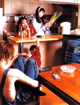 Kami, Gackt, and Mana in a kitchen in family clothes, also that random kid