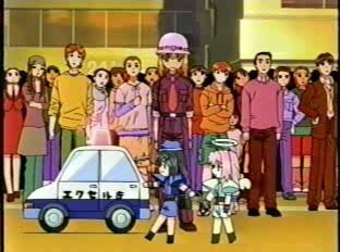 In 2000, Shinichi Watanabe directed an anime series beyond insane called Excel Saga. It was based on a pretty girl anime by the same name that was drawn up by Rikado Koshi. In the city of F, in the prefecture of F, there is a secret organisation called Across. It's leader is none other than Lord Ilpalazzo, who is bent on conquering the ignorant masses. (I.E. The human population.) He has two young women working for him, one is the insane Excel Excel, the other the quiet Hyatt. However, Excel and Hyatt don't get paid very well, and can't usually afford to buy food, so if there's a real need for a snack, they have their emergency food supply, Menchi, a female pup that Excel picked up in the first episode. As if conquering F city wasn't enough, Excel's mental instability doesn't help either, and with both Excel and Hyatt dying numerous times, it makes the chances of conquering the ignorant masses almost nil! But that's okay, because Excel won't let her Ilpalazzo down, and she has enough enthusiasm for the solar system to run on. Many parodies are seen in this anime, (see the 8th episode) such as E.T., Titanic, Nadesico, Terminator 2, Slam Dunk, Lassie, Sailor Moon, Doraemon, Man in the Iron Mask, Cowboy Bebop, Trigun, The Matrix, Pokemon, 'Weather Break' and many more. A spin-off has been made from Excel Saga. It's name is Puni Puni Poemi. Plus, Excel, Hyatt and Ilpalazzo were named after hotels.