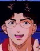 Name : Sakuragi Hanamichi Jersey No : 10 (which should have been Rukawa's no., but he insisted on having that no.) Position : Power Forward Height : 188cm Weight : 83kg Eye Color : Brown Hair Color : Red Grade : Freshman / 1-7 Birthday : April 1 Nickname : Genius(Tensai), Basketman, Shohoku's Secret Weapon(Himitsu Heiki), Rebound King, D' aho (by Rukawa) Shoe Brand :Nike Shoe Size : 280 Hobby : Pachinko, Fight, Quarrel With Rukawa Dreams : Beat Rukawa , Be the best rebound catcher in the state , Be the boy friend of Haruko Seiyuu : Kusao Takeshi |