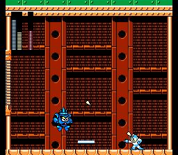 The second Doc Robot in this stage has Crashman's weapons. He can be quite a pain here; he's weakest against Hard Knuckle, but it's very difficult to hit him, since he jumps whenever you shoot. The best way I've found is to get as close as possible to him, jump and shoot a Knuckle; hopefully, he'll jump right into it. Another possible way is to stand in the middle of the room and to try and anticipate where he'll jump to, then fire the knuckle in that direction. Good luck!