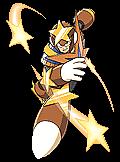 Starman: Starman spends a considerable amount of time being protected with his Star Crash. He hops around for a while before firing the stars at you, then he puts up another barrier. Most weapons can't penetrate the shield, but the Water Wave can. If you have it, Starman should be easy. If not, he still shouldn't be so bad. Take advantage of the low gravity to dodge him.