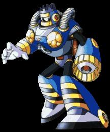 Junkman: Junkman shouldn't give you any problems; especially if you use the Thunder Bolt on him. If you hit him with that, he'll just hop back and forth, throwing trash at you. If you want to use the Mega Buster, he'll use a larger array of attacks. He can create a big garbage block and push it at you, then jumps into it, creating the Junk Shield out of the pieces. Once the Shield is up, you'll have to wait a couple of seconds for it to disappear. He can also make the ground shake when he lands, like Gutsman in MM1.