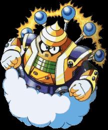 Cloudman: Cloudman is a breeze with the Danger Wrap. Just jump his Thunder Bolt, hit him with the Danger Wrap, and repeat until he's dead. If you're just using the Mega Buster, he'll try to blow you off the edge with wind and rain after trying to zap you with the Thunder Bolt. He'll then alternate between those two attacks.