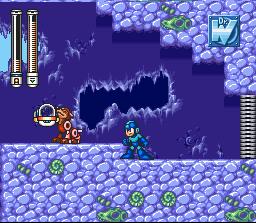Exit Unit: This handy little item allows you to automatically leave a stage provided you already defeated the boss. It's helpful when you want to grab an item in a particular stage, but you don't want to fight through the entire level again. To find it, try out your new-found Rush Search near the end of Freezeman's level. Use the screenshot below for a reference: