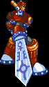 Notes: Wily has equipped Swordman with a gigantic sword that can be charged with fire. However, the sword is so heavy, that Wily had to build his upper body to hover over the lower body to balance the weight better.